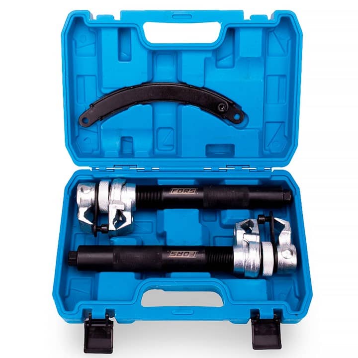 Set omogućava da se obe strane opruge sabijaju ravnomerno i paralelno, čime se značajno smanjuje rizik od povrede i oštećenja delova. Zahvaljujući robusnoj izradi i velikom rasponu prihvata, alat je pogodan za profesionalne auto-servise i zahtevne korisnike.